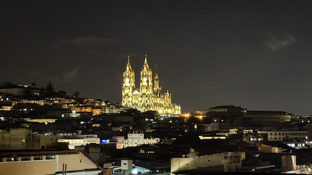 Hans at Finca Sommerwind was providing us with up to date information and with the protests continuing we made the decision, along with another couple, to take a taxi back to Colombia and fly from Ipiales to Quito via Bogotá. It was going to be a long and expensive day and we’d arrive in Quito earlier than we needed but it was still cheaper than losing the Galapagos trip. What we didn’t bargain for was the Avianca desk in Ipiales insisting that we needed a confirmed flight out of Ecuador and despite all the explanations that we were driving and having proof our van was in Ecuador, the only way they were going to let us board, was to book a flight. To top that we couldn’t book it online and had to use the onsite travel agent who was painfully slow but we boarded with about 40 minutes to spare despite arriving three hours early. After a further delay at Bogotá and our pre-booked taxi not being available immediately, we finally made it to our first hotel in Quito around 4.15am!